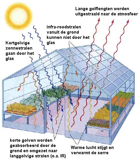 warmtestralen of aardstralen met een grotere golflengte. Dit verwarmt de